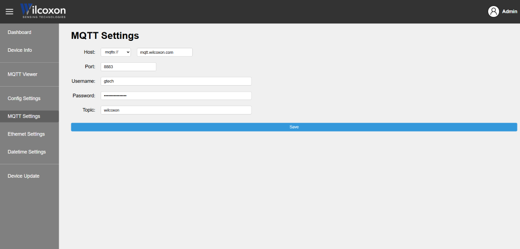 VDS130 Device Center: MQTT Settings